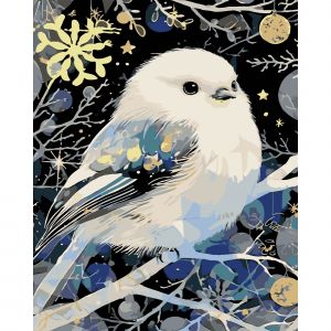 Картина за номерами Strateg ПРЕМІУМ Зимова пташка на чорному фоні розміром 40х50 см (AH1239)