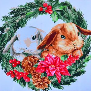 Картина за номерами Strateg ПРЕМІУМ Зимові кролики з лаком та з рівнем розміром 40х40 см(SK059)