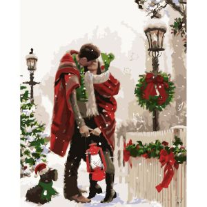 Картина за номерами Strateg ПРЕМІУМ Зимовий поцілунок з лаком розміром 40х50 см VA-1863