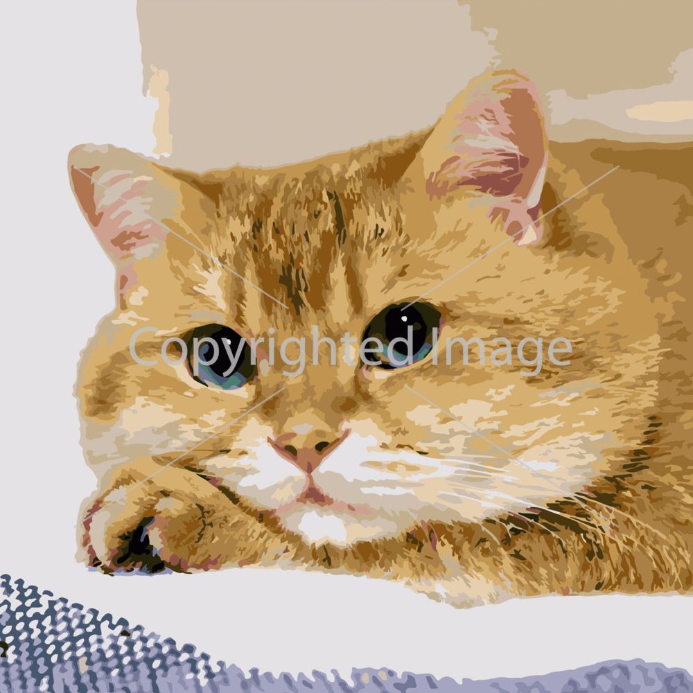 Картина за номерами Strateg ПРЕМІУМ Змучений котик розміром 40х40 см (SK015)