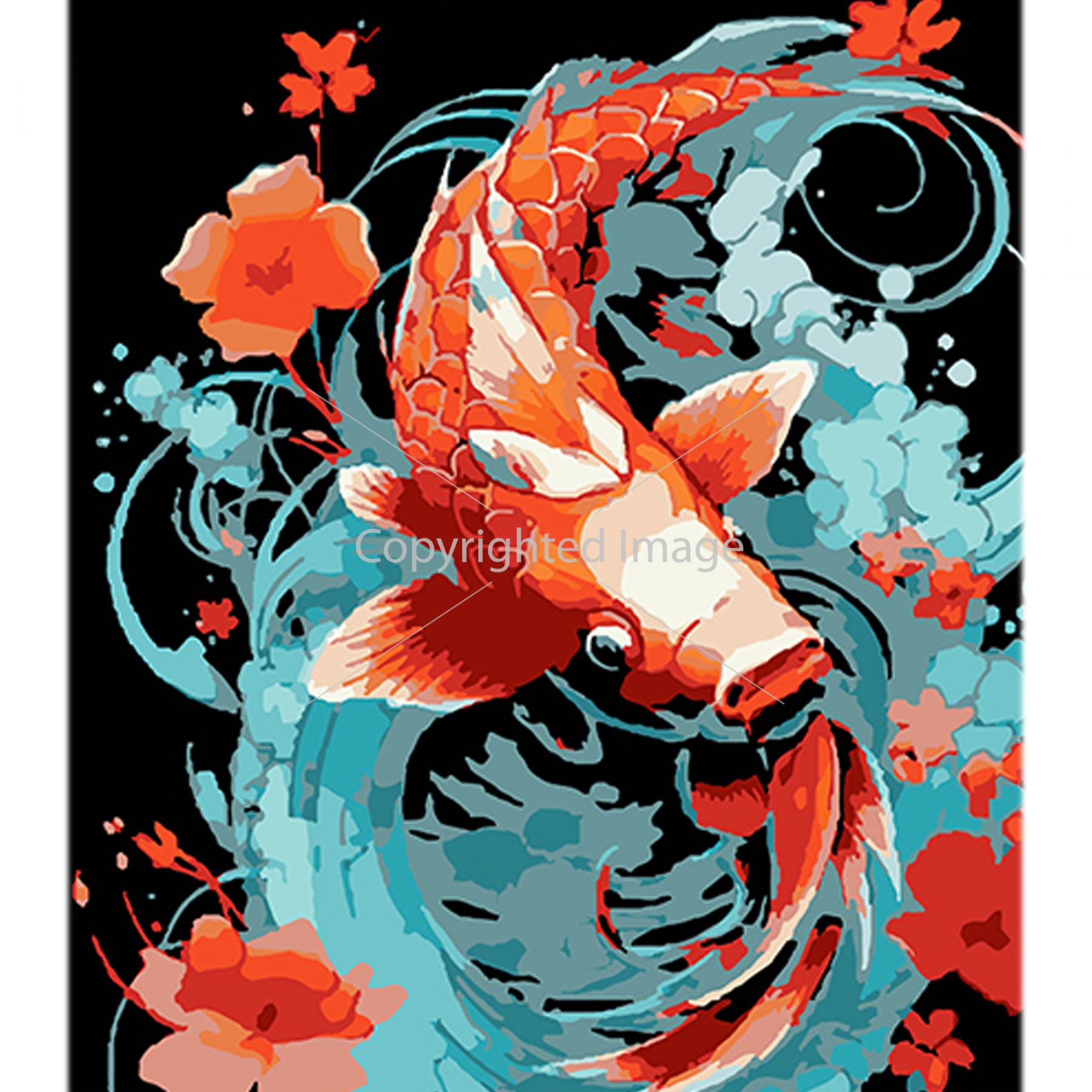 Картина за номерами Strateg ПРЕМІУМ Золота кої у мрійливих водах на чорному фоні розміром 40х50 см (AH1137)