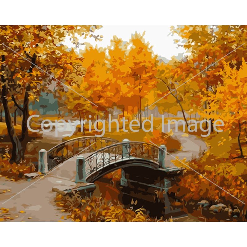Картина за номерами Strateg ПРЕМІУМ Золоте листя з лаком розміром 40х50 см (GS1152)