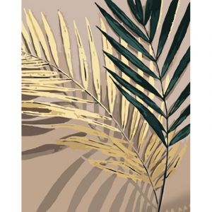 Картина за номерами Strateg ПРЕМІУМ Золоте та зелене листя з лаком розміром 40х50 см (GS1090)