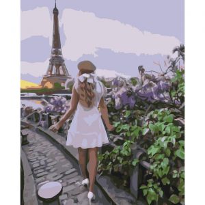 Картина за номерами Strateg Прогулянка Парижем на кольоровому фоні розміром 40х50 см (SY6534)