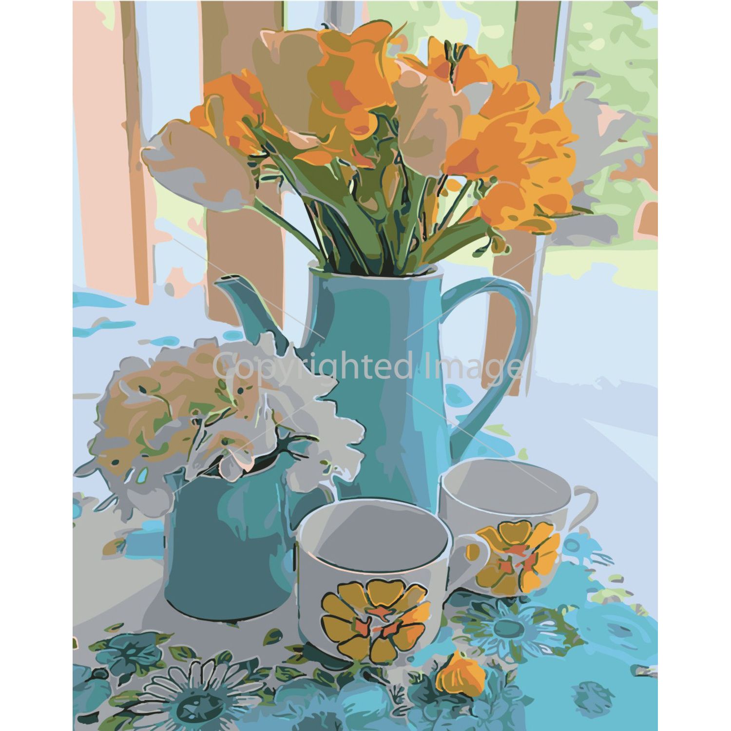 Картина за номерами Strateg Ранкові квіти на кольоровому фоні розміром 40х50 см (SY6424)