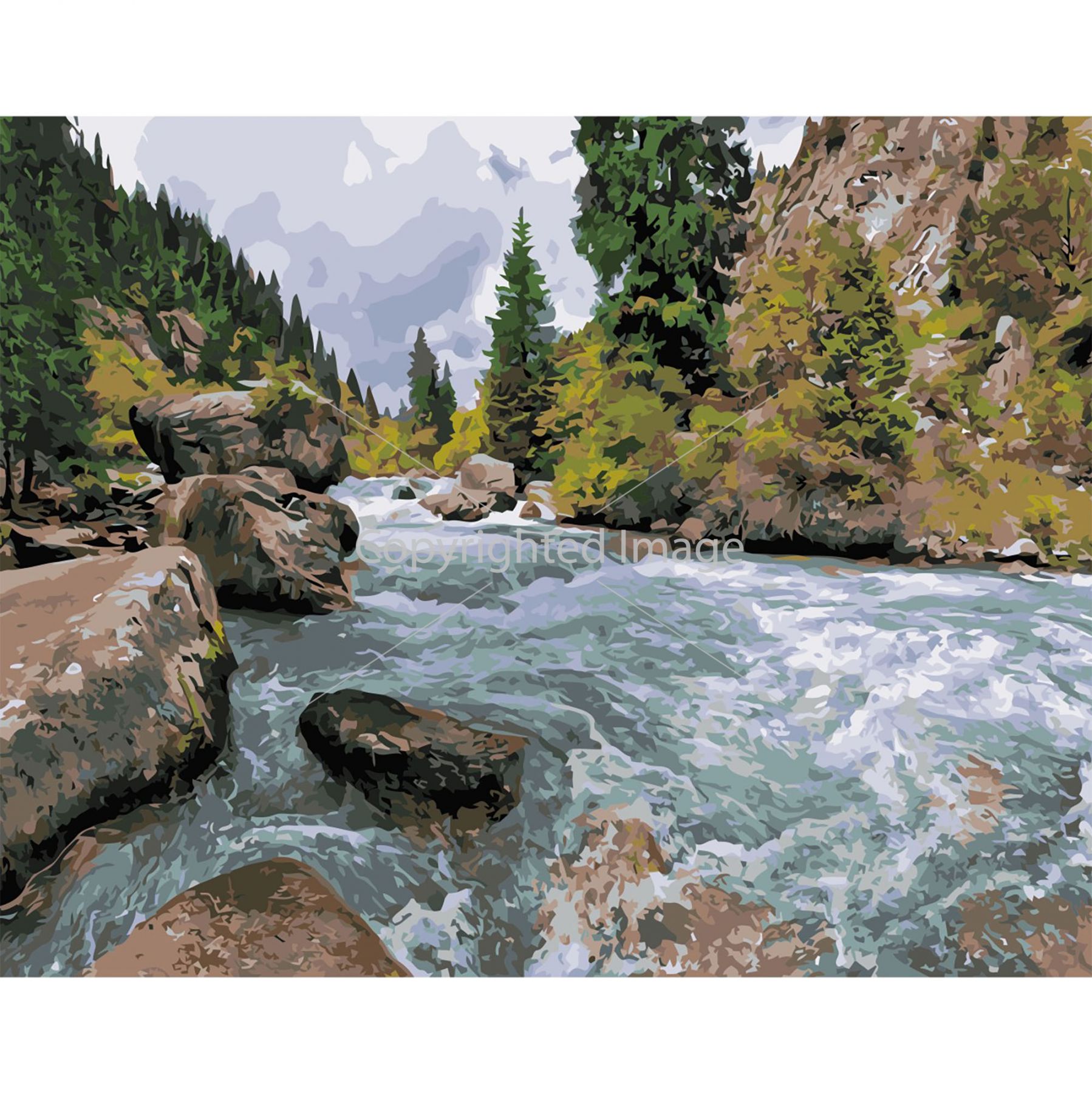 Картина за номерами Strateg Ріка серед лісу на кольоровому фоні розміром 40х50 см (VA-2529)