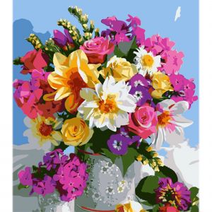 Картина за номерами Strateg Різноманіття квітів у вазі на кольоровому фоні розміром 40х50 см (MZ060)