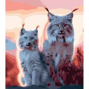 Картина за номерами Strateg Родина рисів у дикій природі на кольоровому фоні розміром 40х50 см (MZ026)