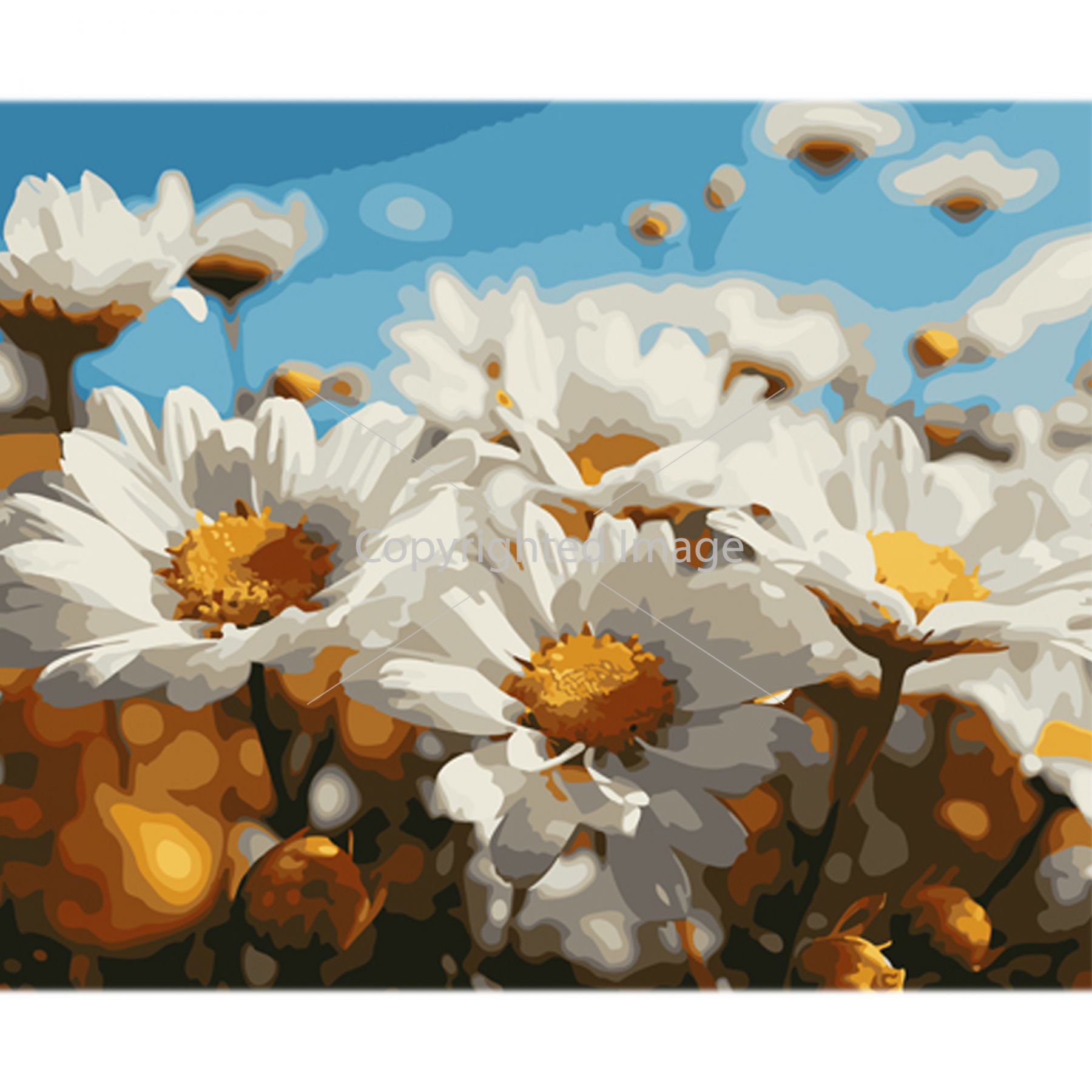 Картина за номерами Strateg Ромашки під блакитним небом на кольоровому фоні розміром 40х50 см (MZ008)