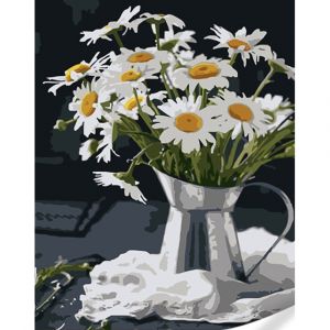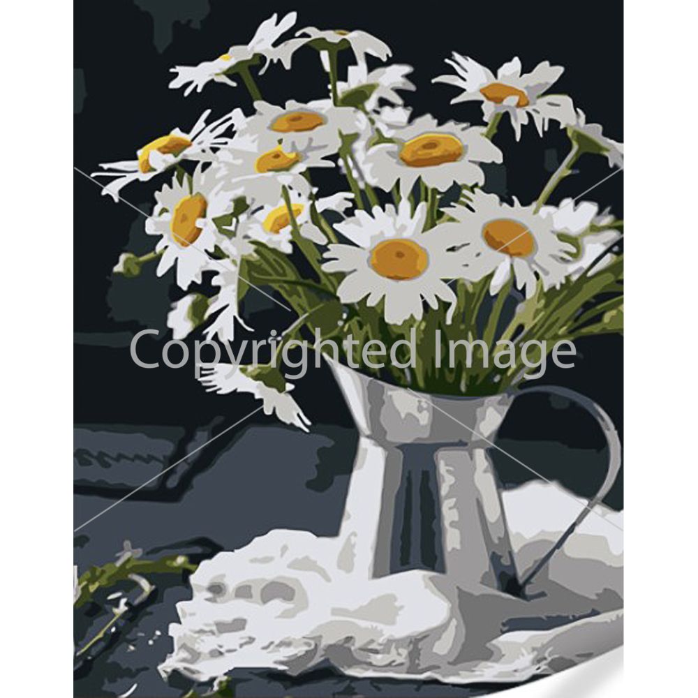 Картина за номерами Strateg Ромашки в келиху на кольоровому фоні розміром 40х50 (GS1634)