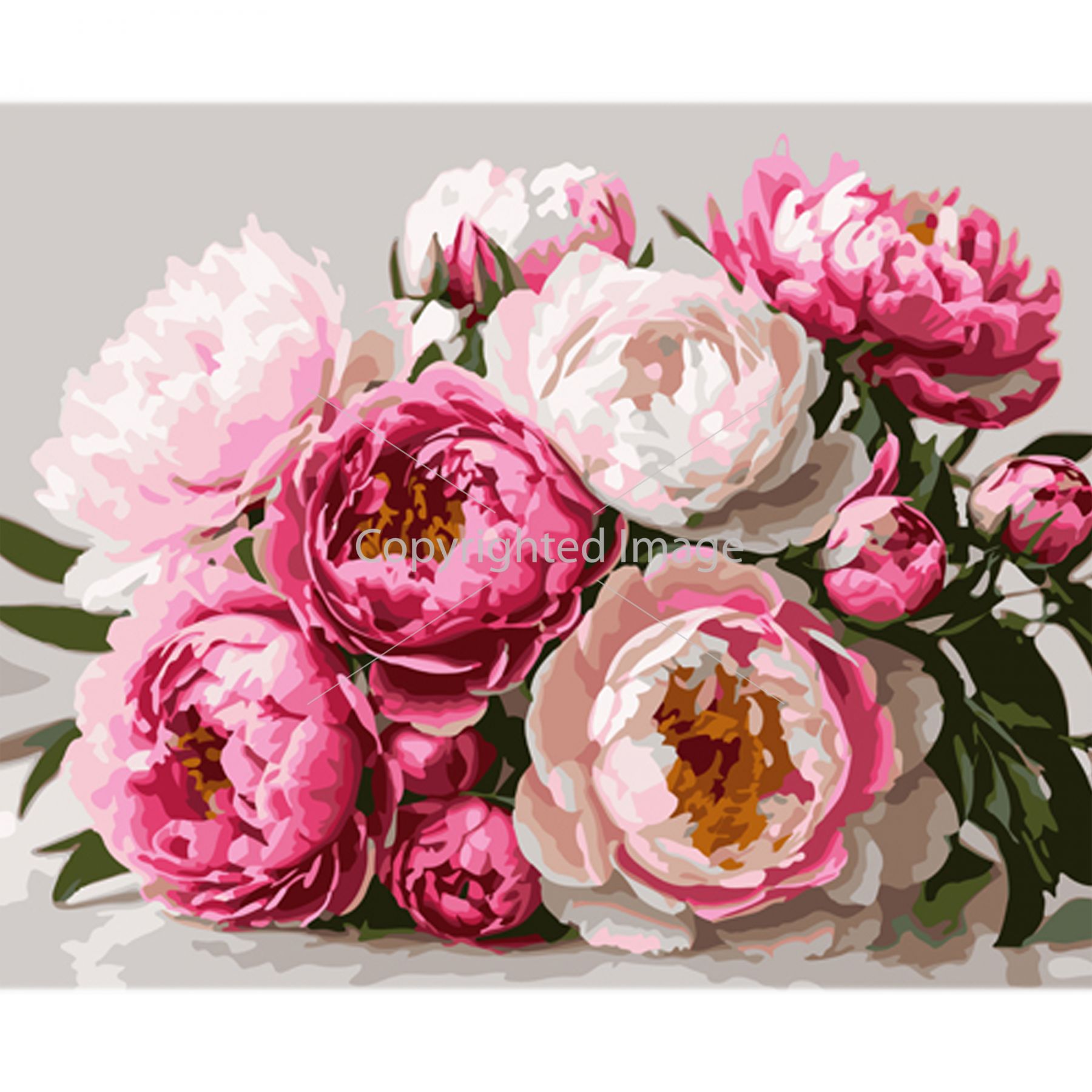 Картина за номерами Strateg Рожева краса півоній на кольоровому фоні розміром 40х50 см (MZ021)