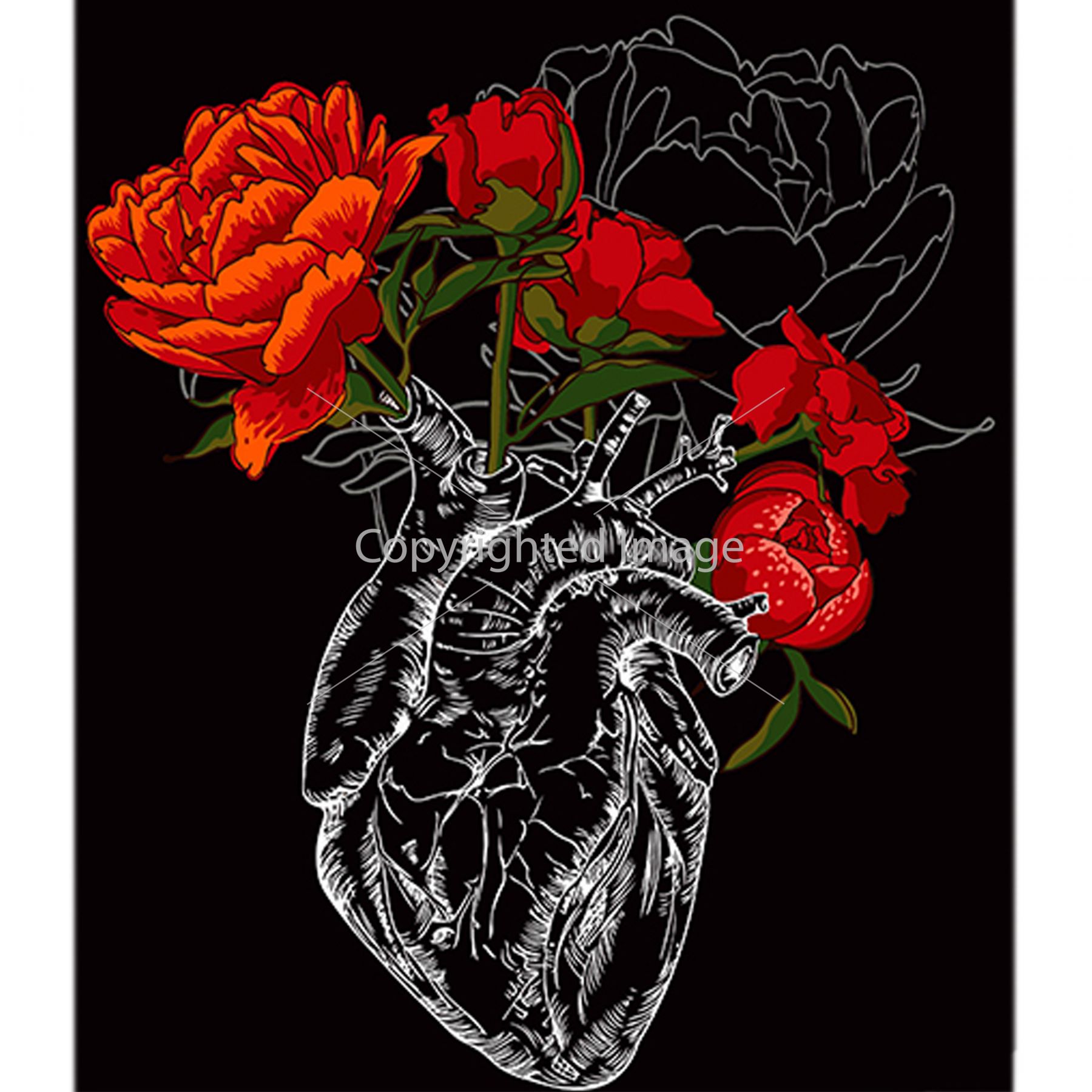 Картина за номерами Strateg Серце квітів на чорному фоні розміром 40х50 см (AH1094)