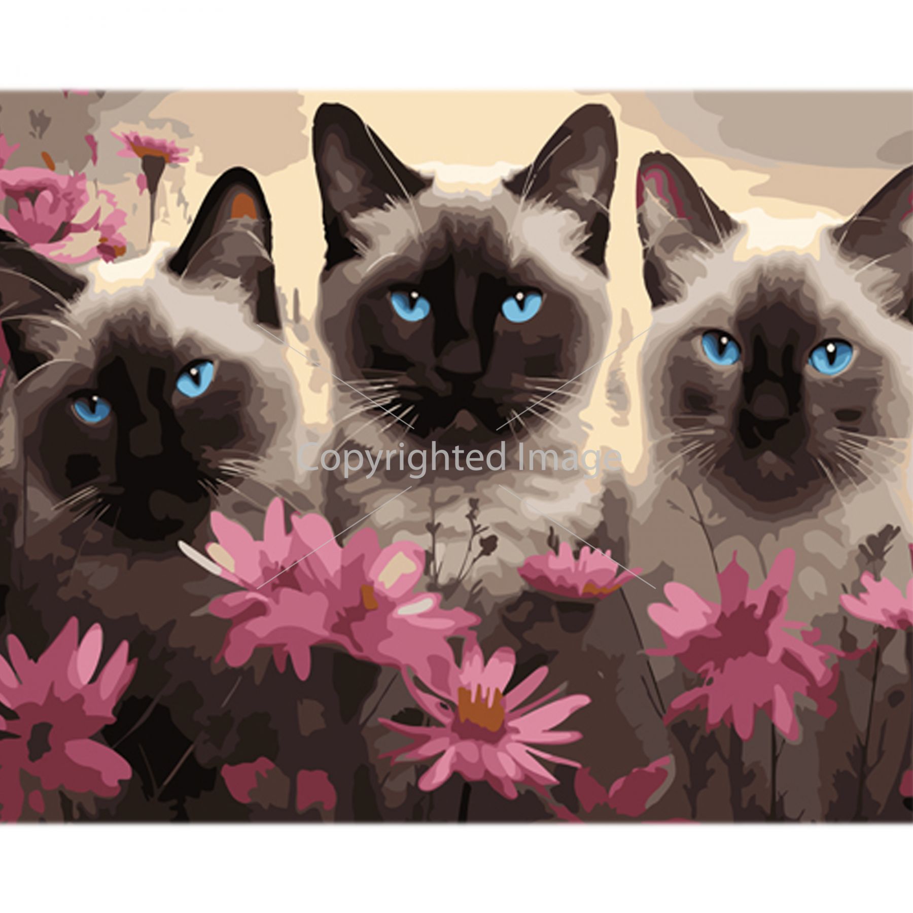 Картина за номерами Strateg Сиамські коти серед квітів на кольоровому фоні розміром 40х50 см (MZ028)