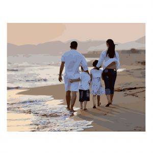Картина за номерами Strateg Сімейна прогулянка берегом на кольоровому фоні розміром 40х50 см (VA-2665)