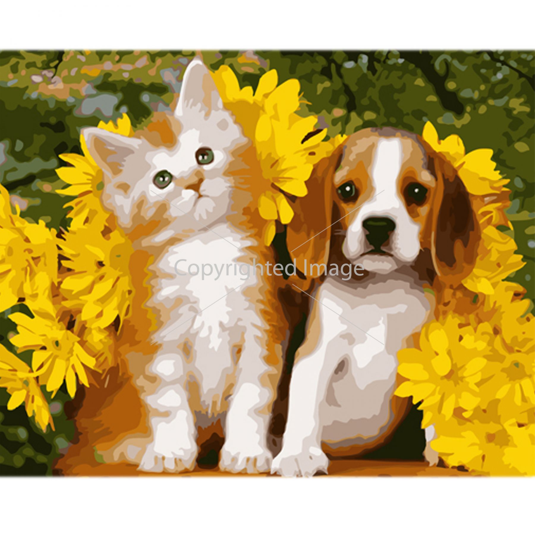 Картина за номерами Strateg Собака та кіт на кольоровому фоні розміром 40х50 см (MZ052)