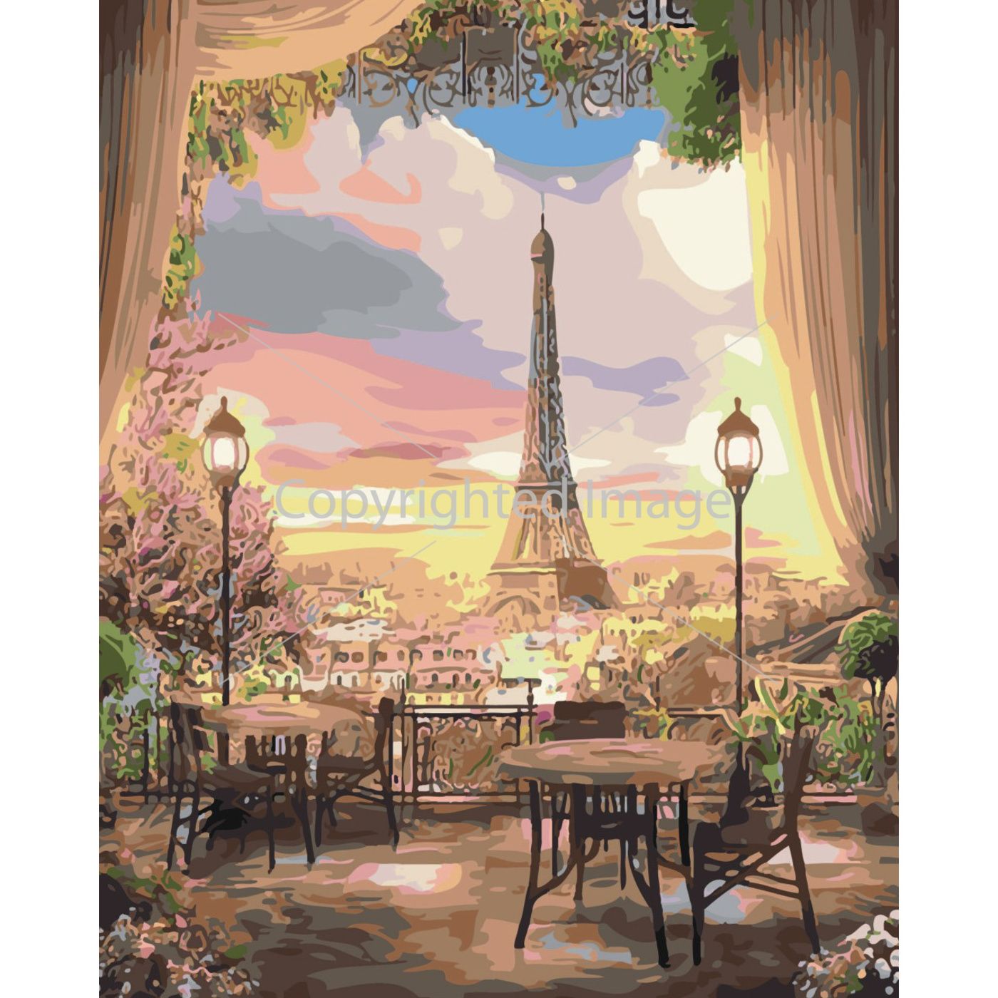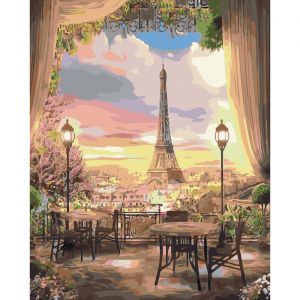 Картина за номерами Strateg Столики в Парижі на кольоровому фоні розміром 40х50 см (SY6488)