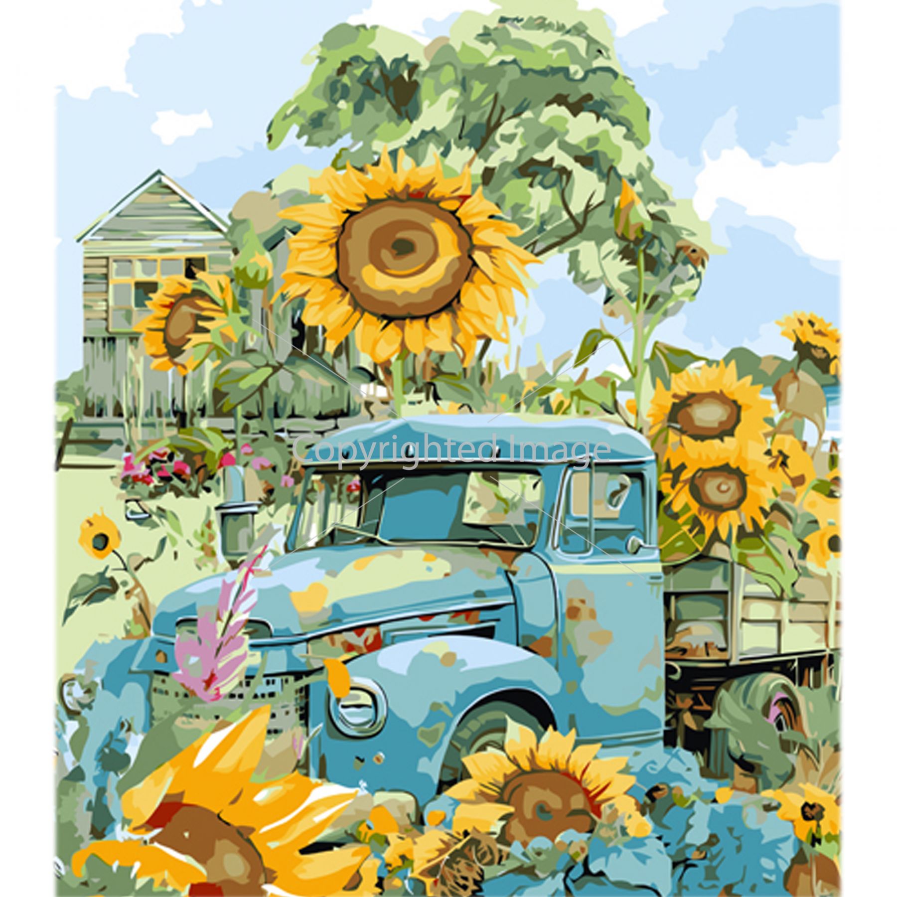 Картина за номерами Strateg Вантажівка у соняшниках на кольоровому фоні розміром 40х50 см (MZ003)