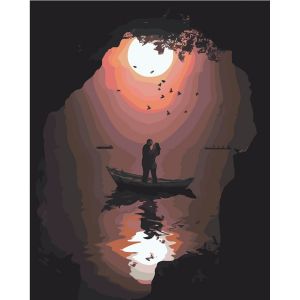 Картина за номерами Strateg Закохані у човнику на кольоровому фоні розміром 40х50 см (SY6417)
