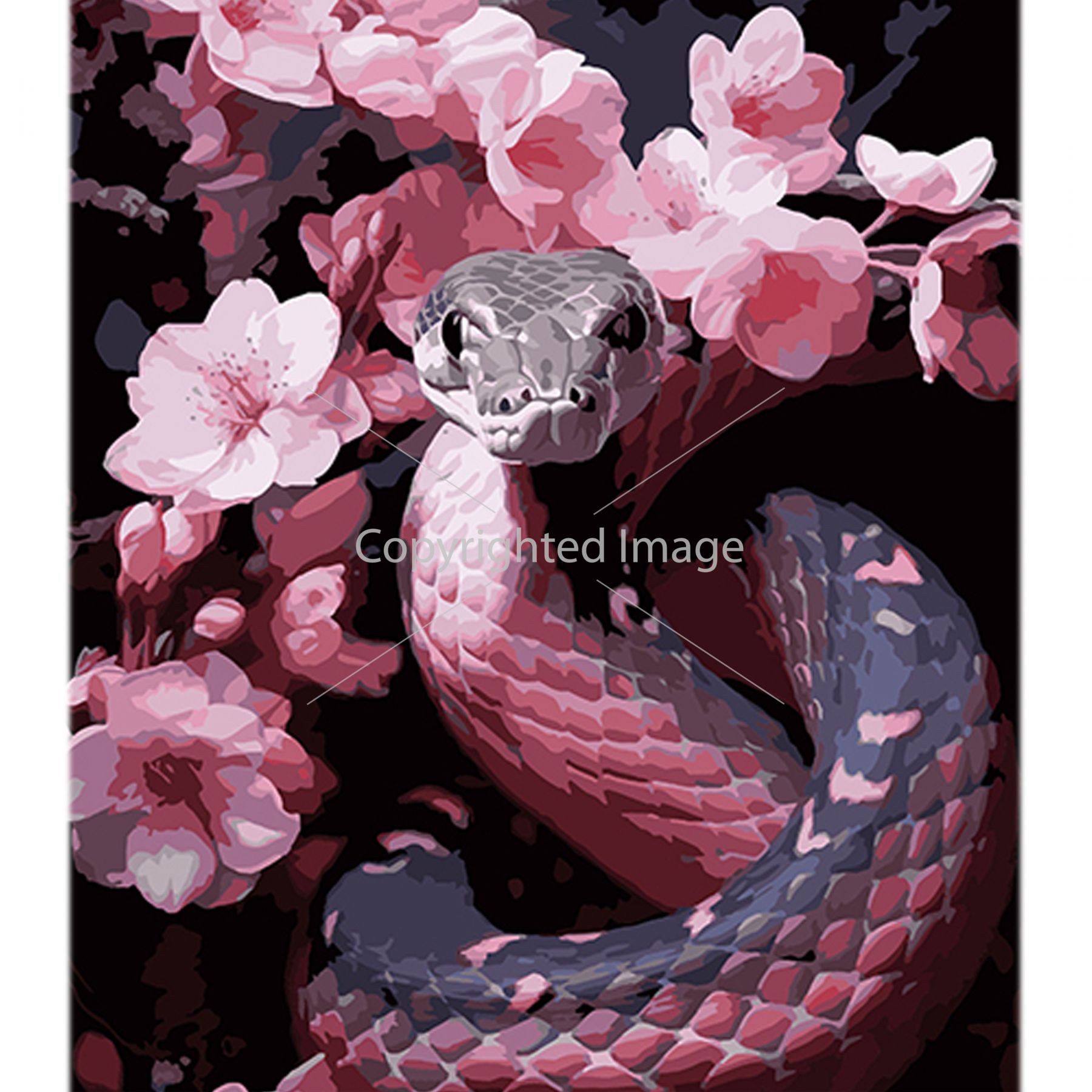 Картина за номерами Strateg Змія та рожеві відтінки на чорному фоні розміром 40х50 см (AH1108)