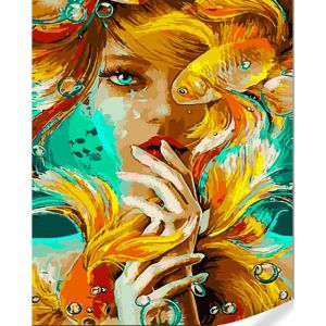 Картина за номерами Strateg Золота рибка на кольоровому фоні розміром 40х50 (GS1594)