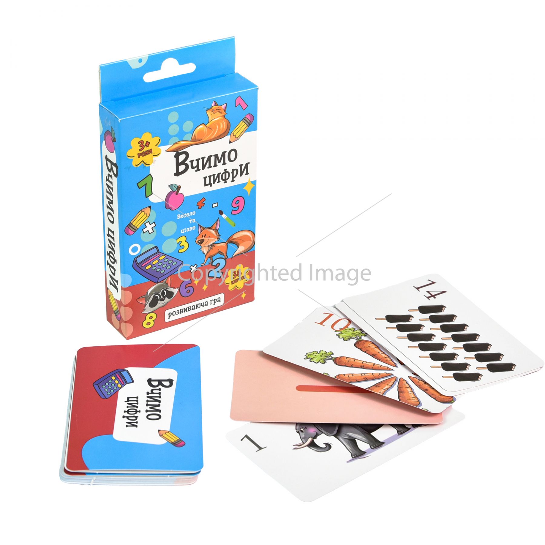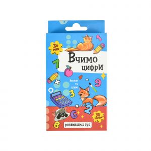 "Вчимо цифри" - це цікава та корисна настільна гра, яка допомагає малюкам вивчити цифри та навчитися рахувати. У комплекті гри міститься 36 карток, на яких зображені цифри та арифметичні знаки за допомогою яких можна складати приклади. Гра призначена для дітей, які тільки починають вивчати математику, а також для тих, хто вже має певний рівень навичок. Вона сприяє формуванню базових математичних знань, розвитку логічного мислення та уяви.