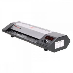Продуктивний офісний ламінатор, формат ламінування А4. Надійний і функціональний. Працює з плівкою будь-якої товщини. Конструкція з 4 валами. Можливості холодного ламінування, фольгування, ламінування фотографій. РК дисплей відображає зміну температури з кроком в 1градус, індикатор готовності. Реверс. Металевий корпус. Прекрасна модель для частого використання в офісі.
