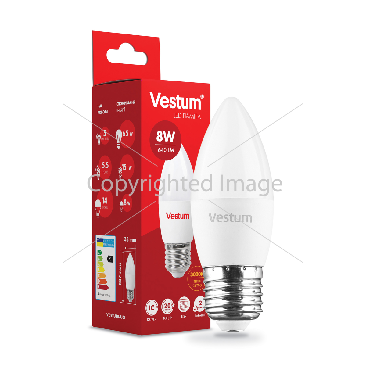 Лампа LED Vestum C37 8W 3000K 220V E27