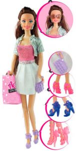 Комплектація:Лялька в сукні, болеро, сумочка, 4 пари взуття, паперовий пакет, сережки, окуляри