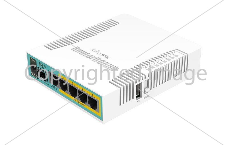Mikrotik hEX PoE - це невеликий маршрутизатор, який оснащений 5-ма гігабітними портами з роздачею PoE-живлення, USB-портом для під'єднання 3G/4G модемів або накопичувачів, SFP портом для з'єднання з оптоволокном. Порти 2-5 можуть живити інші PoE-сумісні пристрої з таким же вольтажем, що і на цьому виробі. Максимальна потужність струму - 1 А на порт або 2 А на всі порти, всі Ethernet порти екрановані.