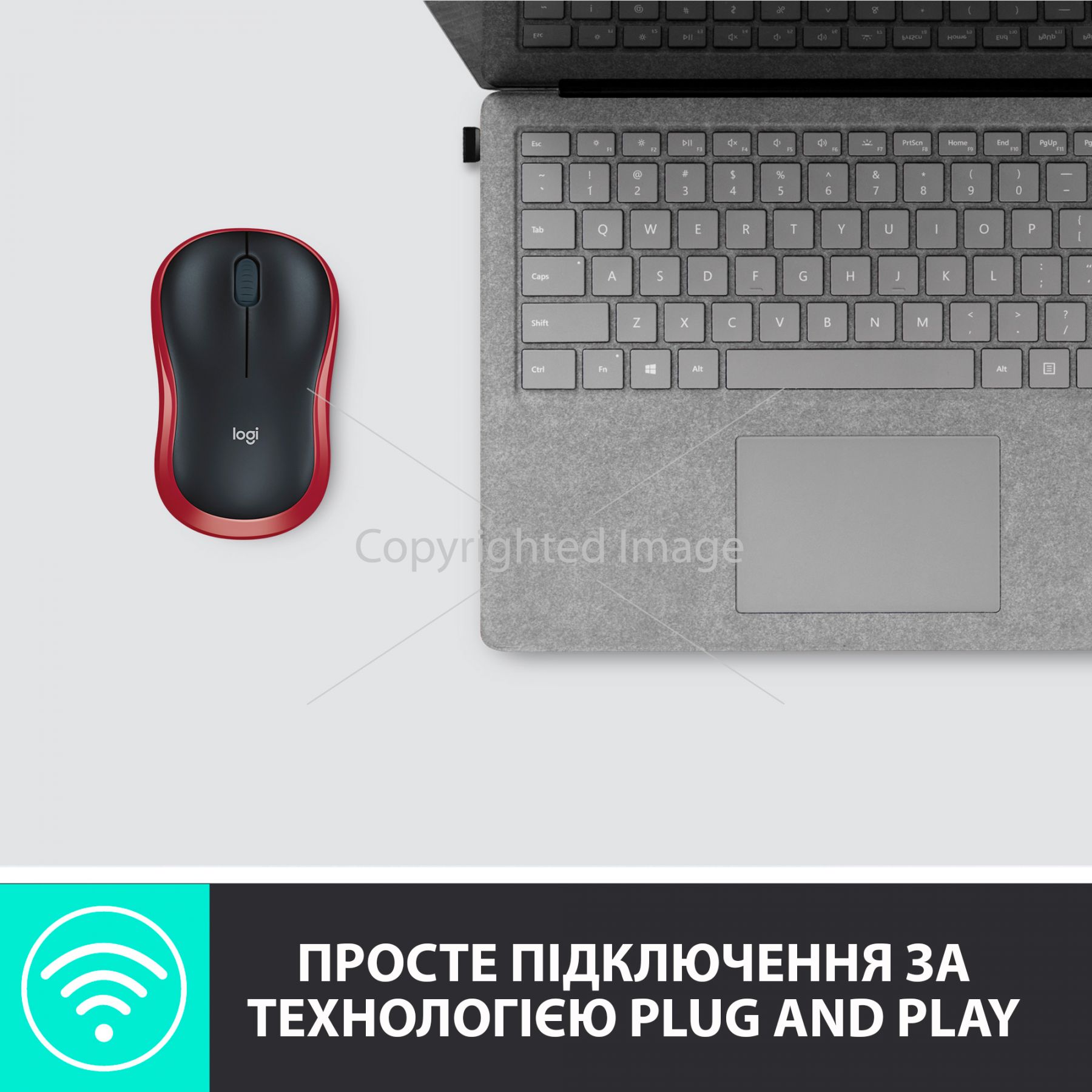 Модель M185 може працювати з операційними системами Windows, macOS, Chrome OS і Linux. Просто вставте USB-приймач в порт на комп'ютері або ноутбуці - і можна без зволікання починати роботу. Приймач забезпечує надійне і стабільне підключення в радіусі до 10 метрів.