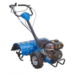 - Висока якість розпушування забезпечується завдяки високій швидкості обертання роторної ґрунтофрези − 250 об/хв. Це майже вдвічі більше, ніж у моделей з ґрунтофрезою замість коліс при відносно повільному (близько 2 км/год) переміщенні мотоблока по оброблюваній ділянці на ведучих колесах. Таким чином, можна за один прохід рихлити ґрунт на всю глибину захоплення ґрунтофрези.