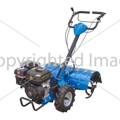 Зниження навантаження відбувається завдяки компоновці, характерної для набагато потужніших професійних машин, а саме − роторна ґрунтофреза винесена назад і приводиться в дію через окремий редуктор. У свою чергу, поступальний рух усього агрегату вперед або назад здійснюється завдяки провідним колесам з шевронним протектором «ялинка».