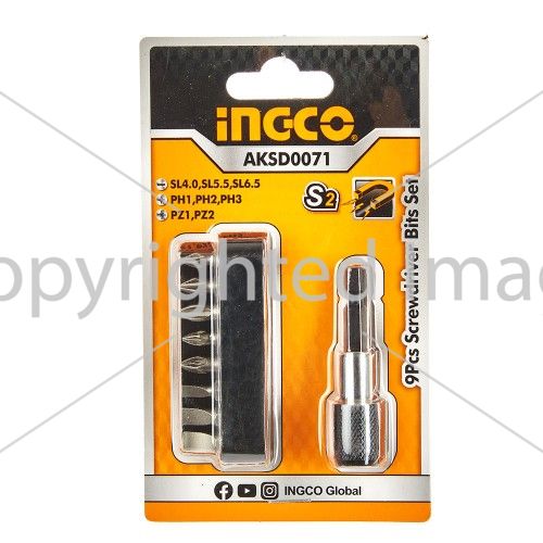 Набір біт з власником 9 предметів INGCO застосовується для закручування шурупів з різними шліцами.