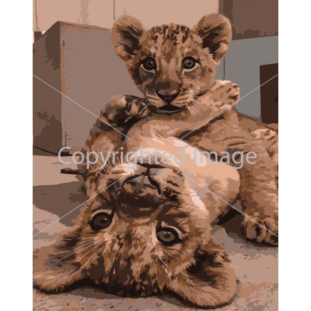 Картина за номерами Strateg ПРЕМІУМ Діти-левенята розміром 40х50 см (DY250)