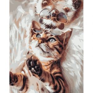 Картина за номерами Strateg ПРЕМІУМ Котик з їжачком розміром 40х50 см (GS1049)