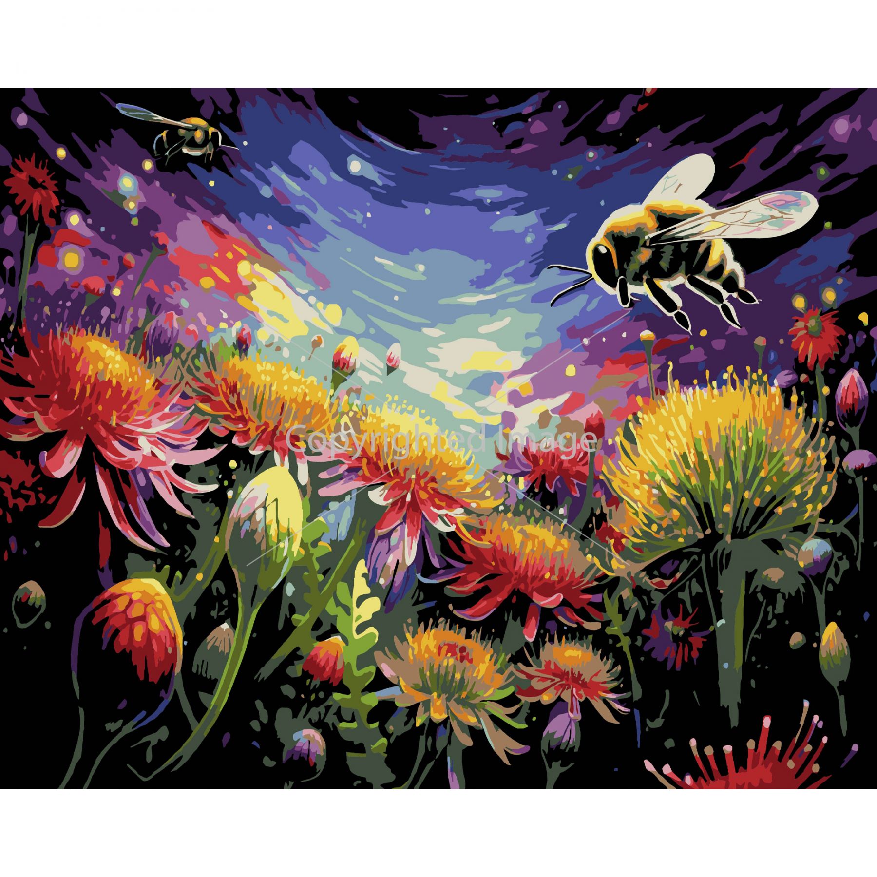 Набір для розпису по номерах Над квітами Strateg на чорному фоні розміром 40х50 см (AH1161)