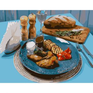 Набір для розпису по номерах Обід на грилі Strateg розміром 40х50 см (GS296)