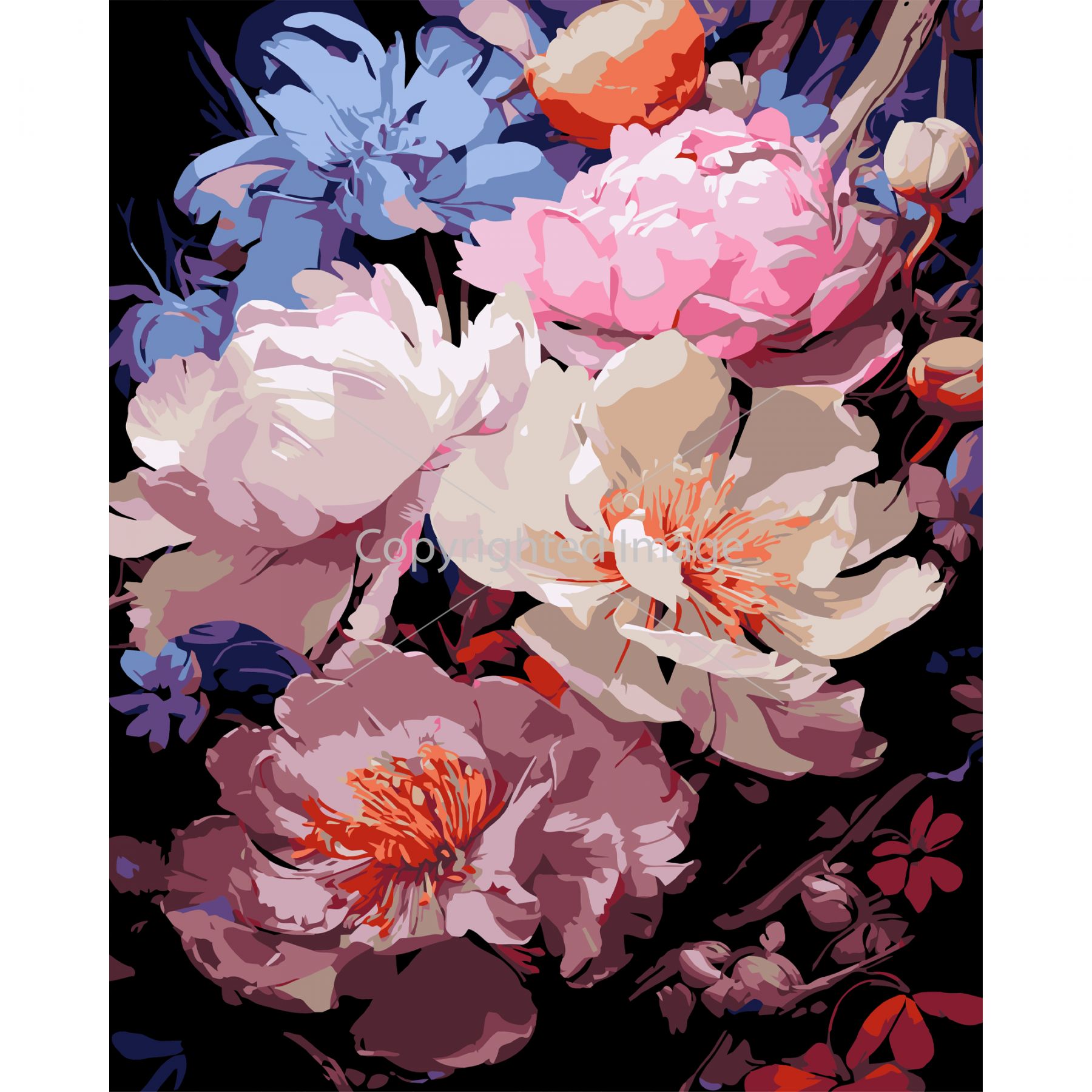 Набір для розпису по номерах Пелюстки ночі Strateg на чорному фоні розміром 40х50 см (AH1164)