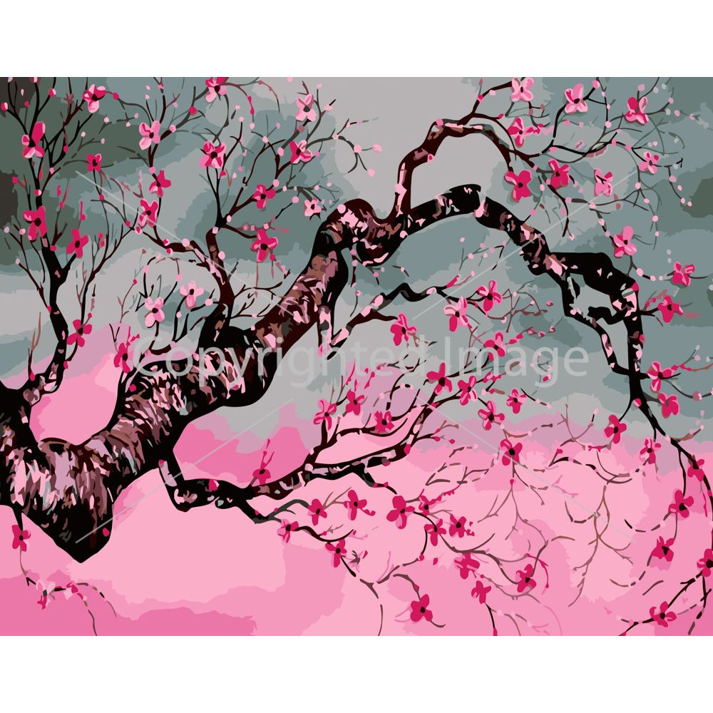 Набір для розпису по номерах Ранкова сакура Strateg розміром 40х50 см (DY140)