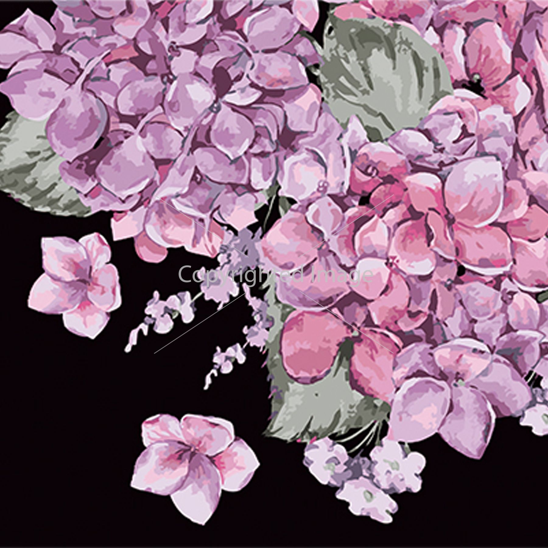 Набір для розпису по номерах Цвітіння гортензій Strateg на чорному фоні розміром 40х40 см (AV4040-29