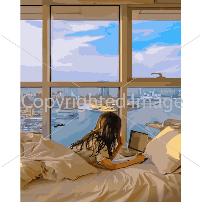 Картина за номерами Strateg ПРЕМІУМ Відпочинок на підвіконні розміром 40х50 см (GS1261)