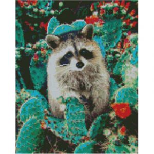 Алмазна картина Strateg ПРЕМІУМ Єнот у кактусах розміром 40х50 см (L-271)