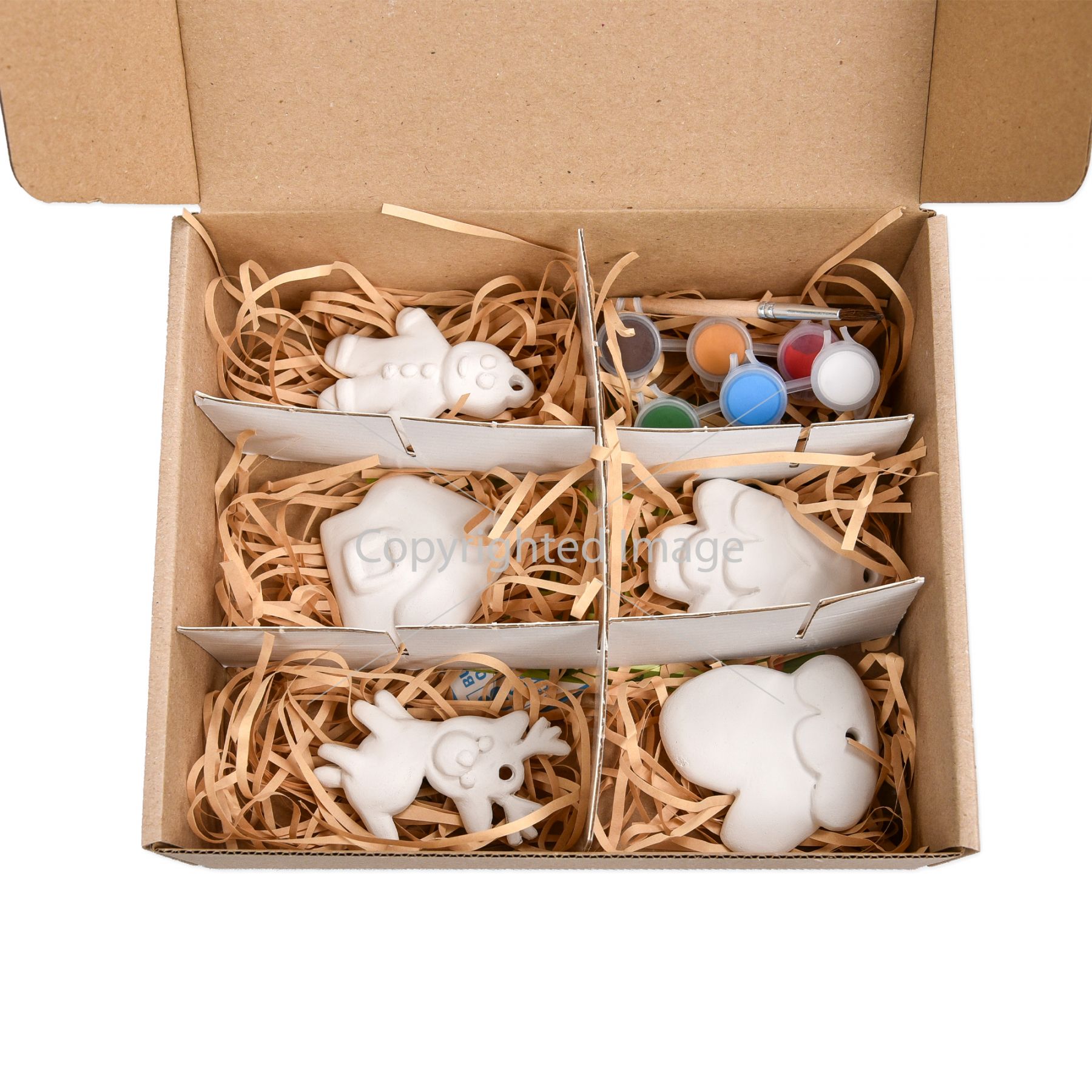 Створіть справжнє зимове диво власноруч! Цей набір дозволить вашій дитині поринути у чарівну атмосферу свят. У комплекті ви знайдете 5 гіпсових фігурок у вигляді улюблених новорічних символів: ялинки, оленя, пряникового чоловічка, будиночка та рукавички.