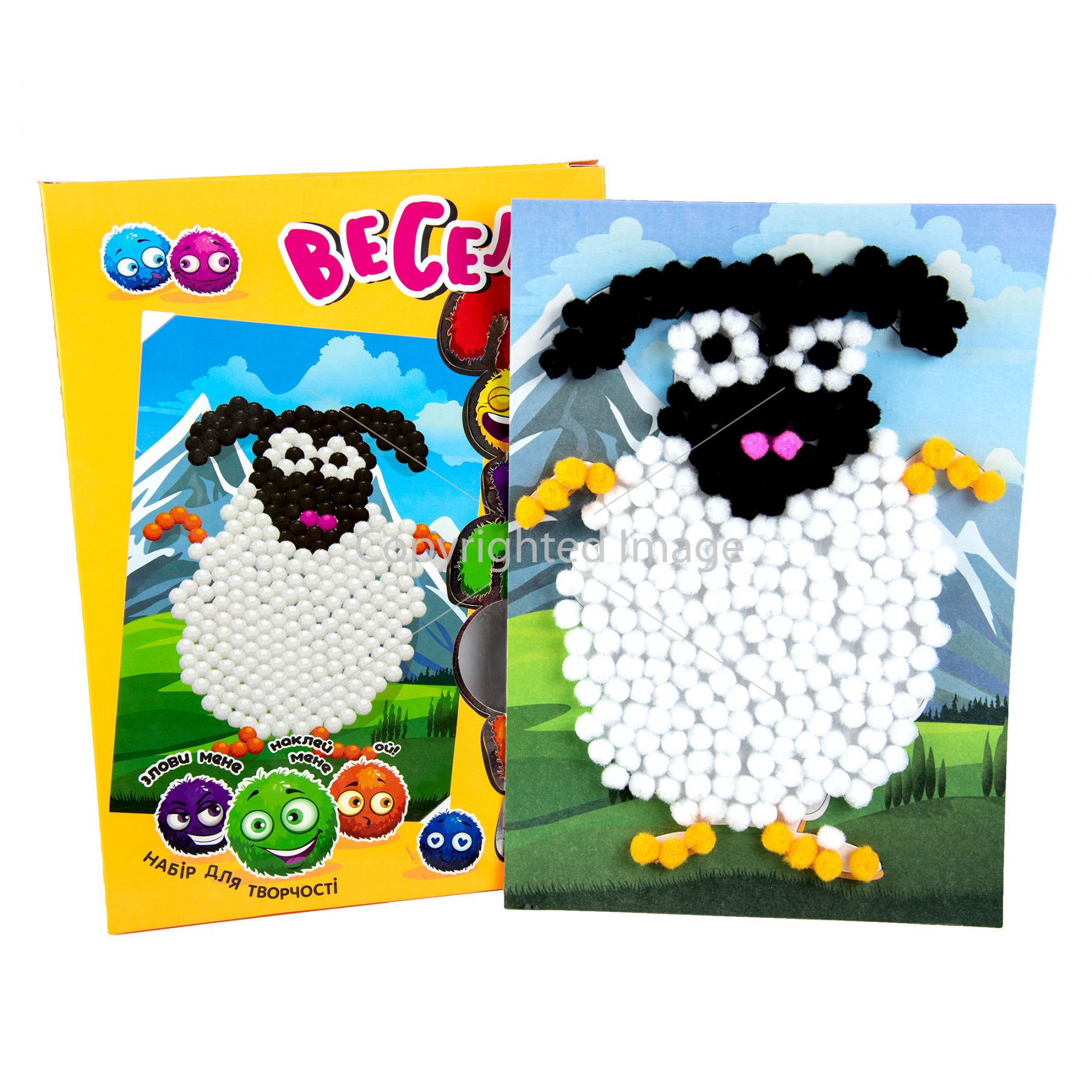 Комплектація:картинка-основа з клейовим шаром, помпони.