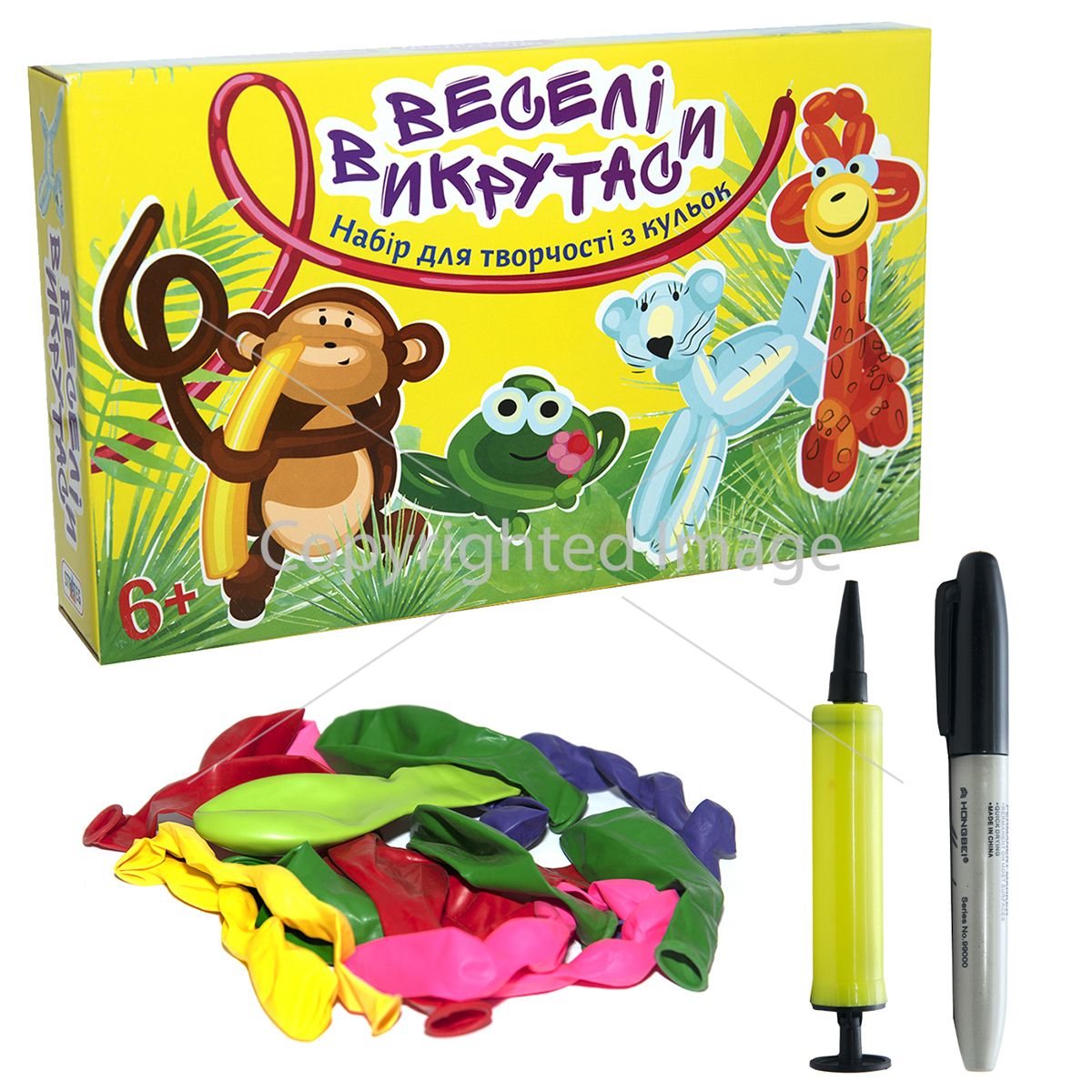 Набір з повітряними кульками для створення іграшок своїми руками – чудовий спосіб навчити дитину першим фокусам. У комплекті є все необхідне, що допоможе дитині попрактикуватися у створенні витончених виробів. За допомогою набору "Веселі кульки" можна зробити квітку, тварин, фігурку казкового персонажа. У комплекті 10 кульок, інструкція, схеми (міняються в залежності від набору), маркер для малювання іграшок очей та рота, насос. ♦ Рекомендований вік: 6+ ♦ Розмір пакування: 27,5х17х5 см ♦ Комплектація: ручний насос, 10 кульок, маркер, інструкція. ♦ Вага: 140 г (+-20 г)