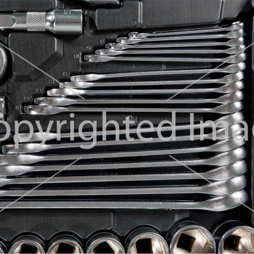 Комбіновані гайкові ключі (15 шт), розрізні ключі (5 шт), шестигранні ключі Г-образні (10 шт), молоток слюсарний 300 гр (1 шт), комбіновані плоскогубці 180 мм (1 шт), затискні кліщі 250 мм гейферний захоплення (1 шт), викрутки (6 шт).