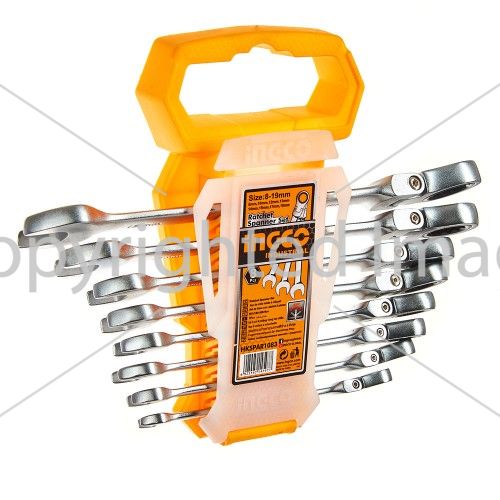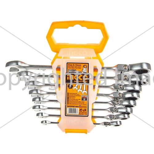 Набір ключів гайкових комбінованих храпових гнучких 8–19 мм 8 шт. INGCO INDUSTRIAL