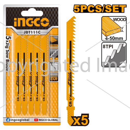 Набір пиляльних полотен по дереву для лобзика, грубий різ, 5 шт. INGCO