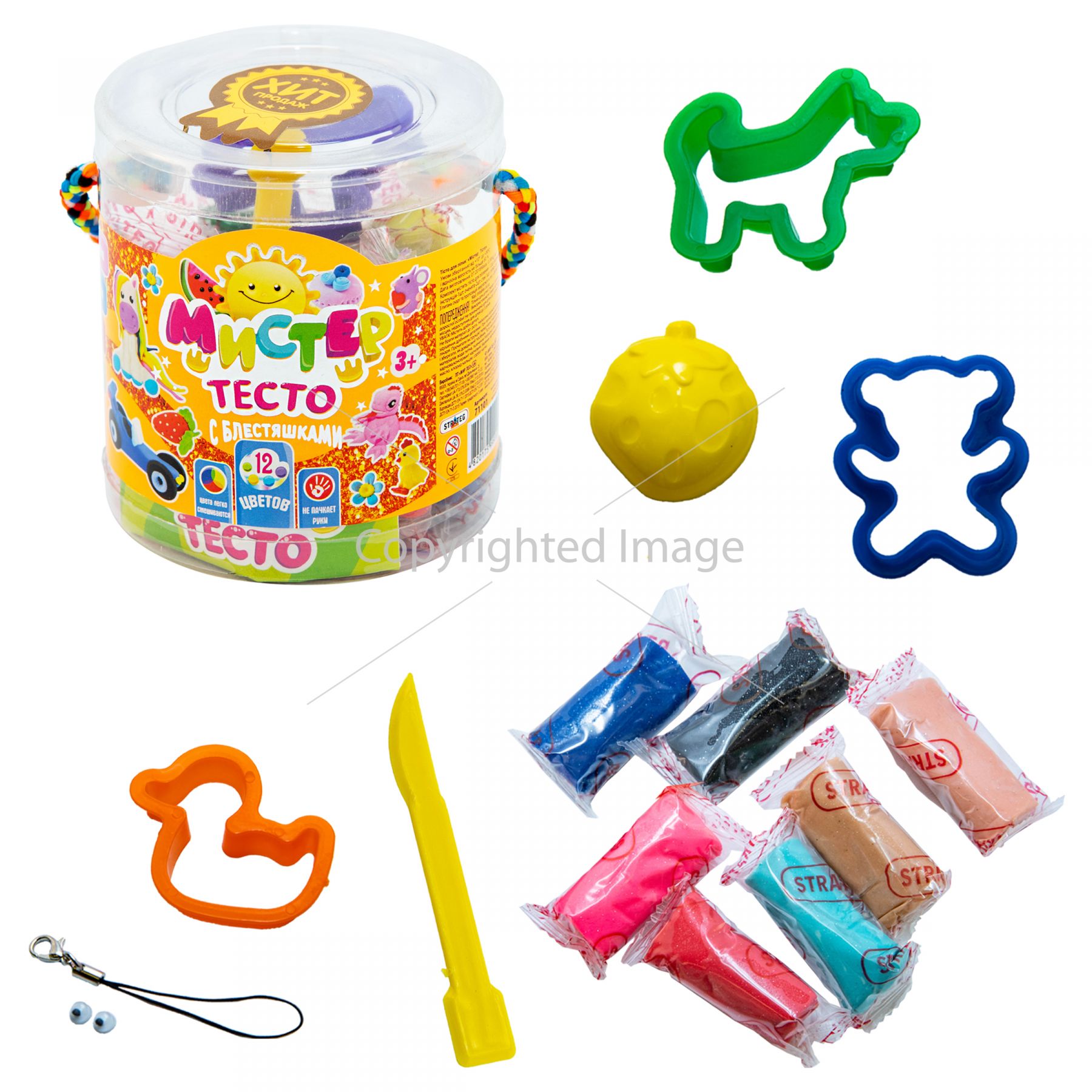 Набір тіста для ліпки Strateg Містер тісто в блістері з блискітками 12 кольорів (71101)