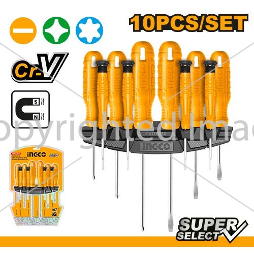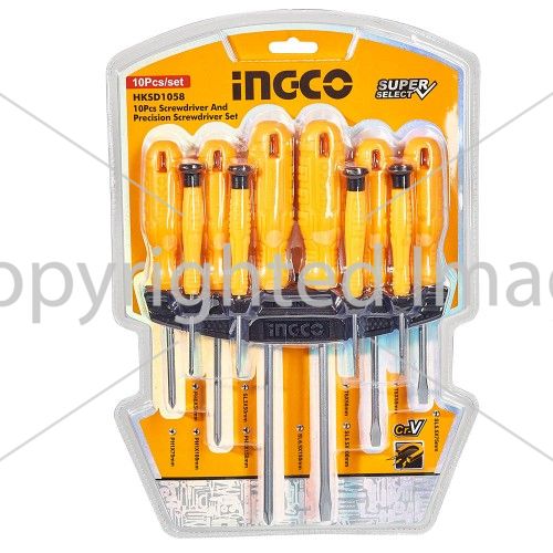 Набір з 10 позицій: :6 викруток: SL5×75 мм, 1 шт.; SL5×100 мм, 1 шт.; SL6×150 мм, 1 шт.; PH1×75 мм, 1 шт.; PH1×100 мм, 1 шт.; PH2×150 мм, 1 шт. 4 прецизійні викрутки: SL3×50, 1 шт.; PH0×50, 1 шт.; T6×50, 1 шт.; T8×50, 1 шт.